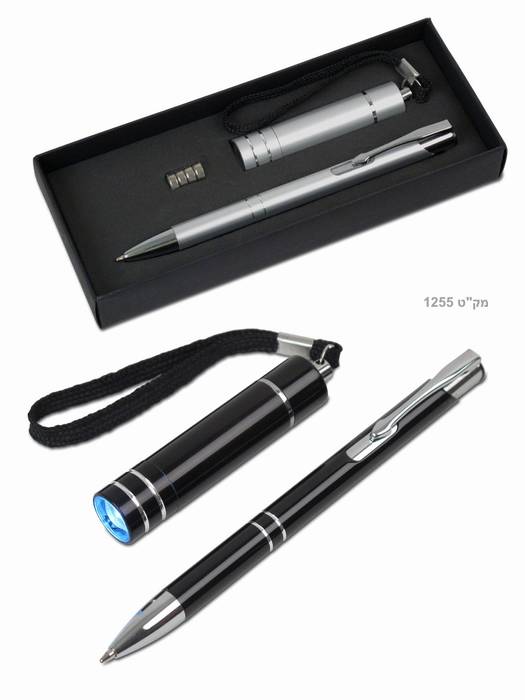 סט של עט מתכתי ופנס לד מאלומיניום באריזת מתנה.